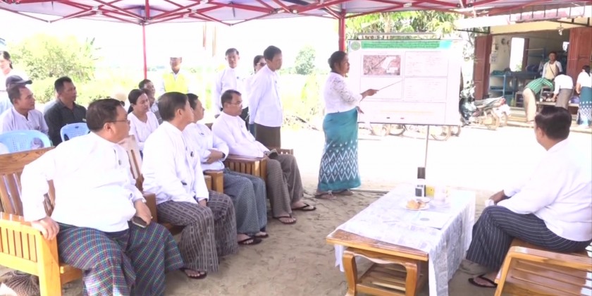 Then, the Union Minister coordinated the requirement on distribution of irrigated water and implementation processes for the development of rural areas. At Yone Taw Village in Mway Yoe Kyaung Su Village-tract, the Union Minister and party oversaw the plantations of pre-monsoon cotton and other crops, jointly implemented by Shwe War Tun (2) Agriculture Production Cooperative Co. Ltd., and Myanmar Uni-Semi Co. Ltd.,.