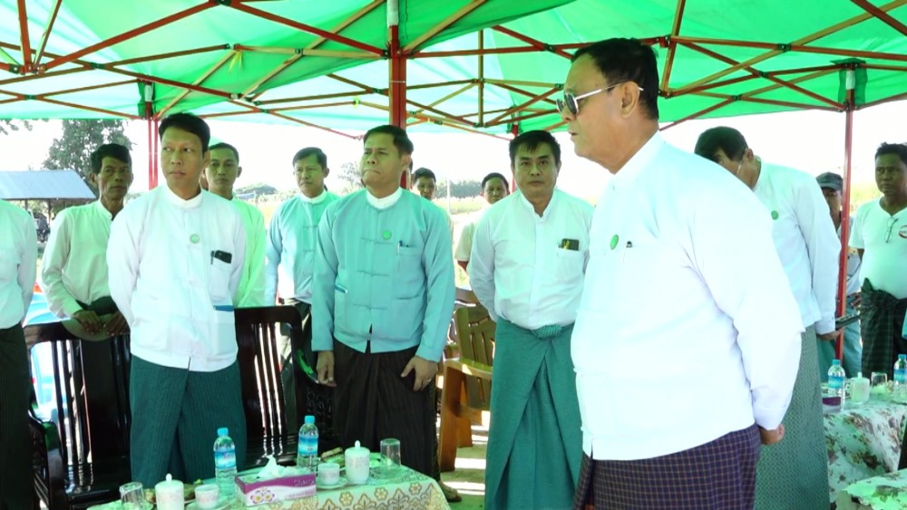 Then, the Union Minister and party met with the members of the village water supply committee, the village Emerald Green project committee and village elders. The Chairman of the village emerald green project committee reported that the Emerald Green project in Tha Pyay San Village has been implemented with 3 million kyats in the 2023-2024 fiscal year and loan has been granted to a total of 84 cooperative members.