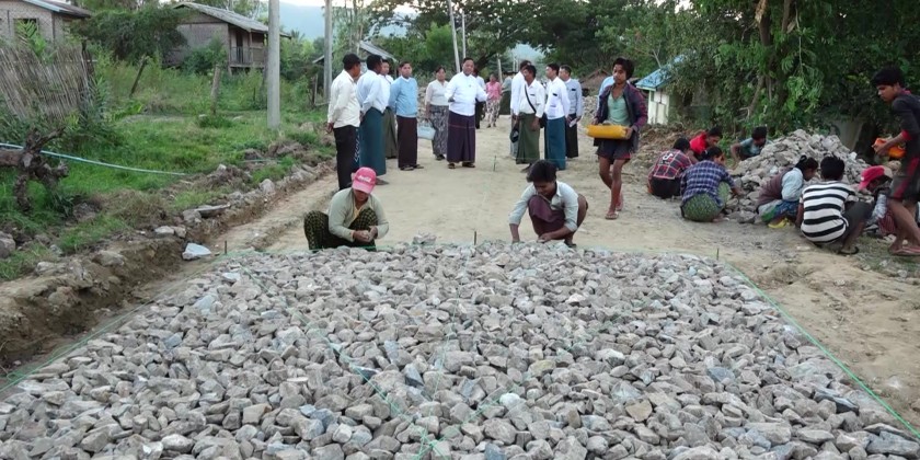 The Union Minister and party oversaw the concrete paving works over Tha Ga La-Thant Zin Hla village to village road implemented by Department of Rural Road Development of Pobbathiri Township.