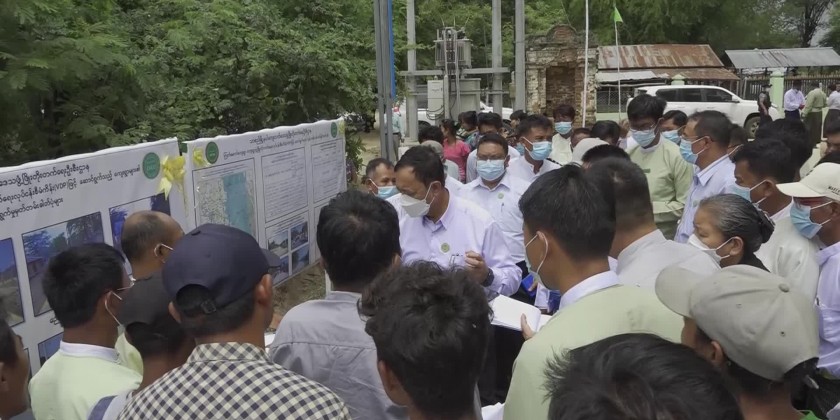 Next, the union minister met with the members of green village committee and people in SiKone Village in Meiktila Township. The township officer of rural development department clarified the implementations of rural development works in Meiktila Township, implementation of green village project and Village Revolving Fund project.