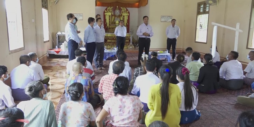 Next, the township officer of rural development department clarified the implementations of rural development works in Tharsi Township and the people of the village reported the works to be implemented in the village. The union minister coordinated necessaries responding to the reports.