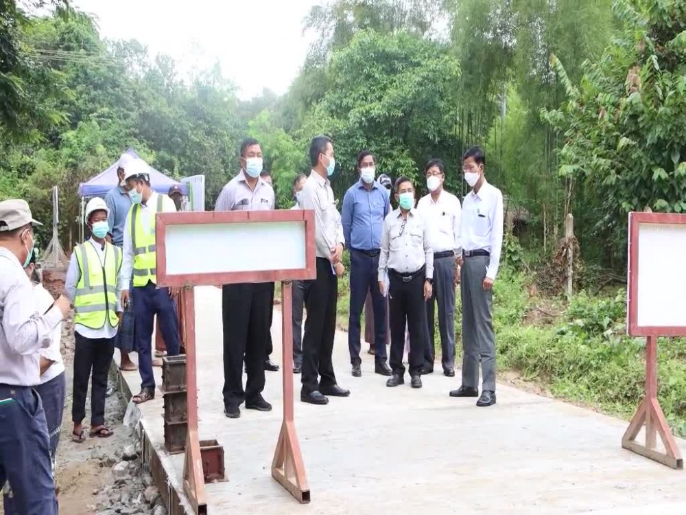 Later, the Deputy Minister and party inspected laying concrete and coordinated the needs. Later, the Deputy Minister and party looked into laying concrete of Wah Yon Sun-Phe Kha Mae-Sae Let rural to rural road linking to Dar Pein in Bago region and stressed on long-term existence of development tasks.