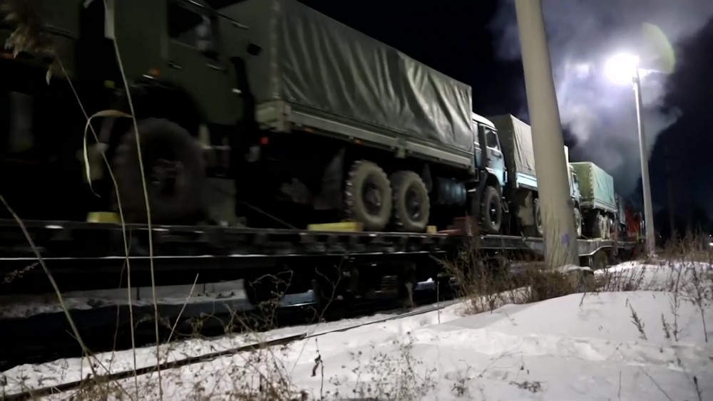 Russia continued sending military vehicles to Belarus for joint drills Monday as tensions increase between Russia and Ukraine near their common border. In joint military exercises with Belarus, Russian military units have moved to areas near Belarus' southern border, which is about 75 kilometres from Kyiv.