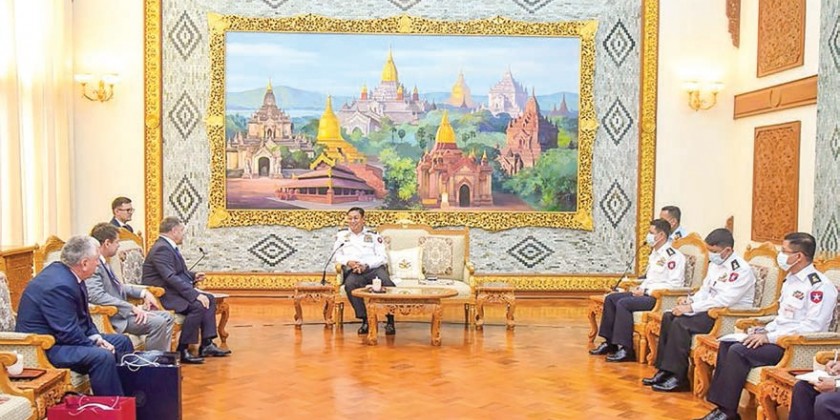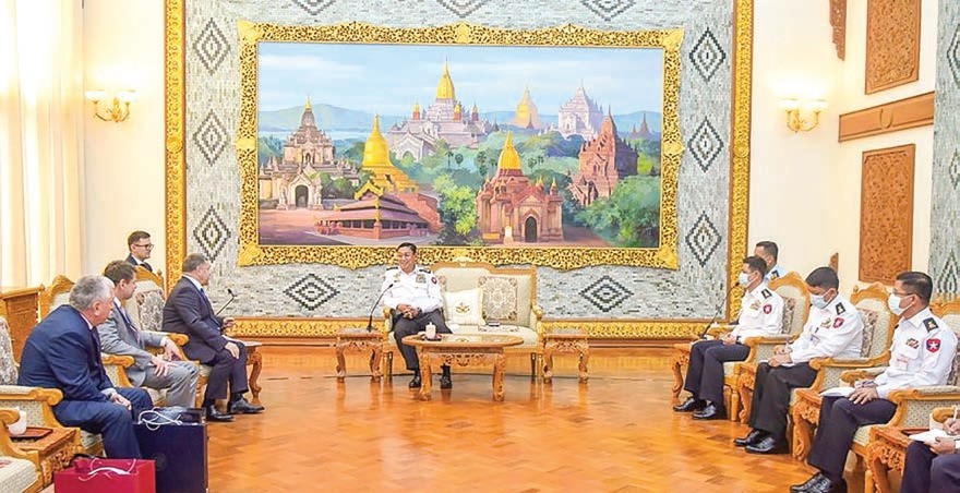 Commander-in-Chief (Navy) Admiral Moe Aung received Deputy Director-General of JSC “Rosoboronexport” Company Mr. Chekmarev Andrey Lvovich of Russia Federation in Nay Pyi Taw on Monday.