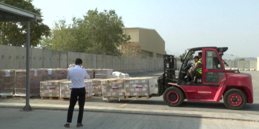 Jussi Tabio Laaksonen , Coordinator, Supply Chain Capacity Devel. For IFRC said "All of these items are going with the trucks to the Kunar province, and there, they will be looking... some of them can be distributed locally, and some of them they might need [to] transport them further or more remote communities where there is no road access at the moment, but for us, as a supporting partner here, Afghan Red Crescent is doing the last mile."