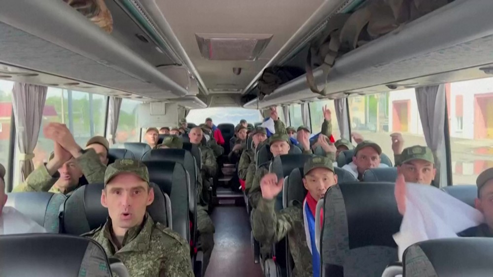 Russia's Defence Ministry showed the latest round of prisoners of war returned from Ukraine. It's the third exchange this week as part of a deal agreed in Istanbul to free more than 1,000 prisoners of war on each side, as well as the bodies of deceased soldiers. The first stages of the swap took place on Monday and Tuesday. The swapped Russian soldiers were now in Belarus.