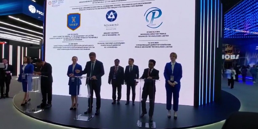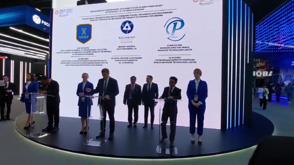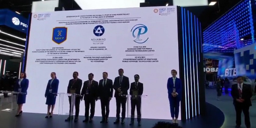 And the Union Minister and party also attended the signing ceremony on Memorandum of Understanding – MOU between the Ministry of Electric Power of the Republic of the Union of Myanmar and Nova Wind JSC, Primus Advanced Technologies Ltd. of the Russian Federation for wind power projects research in Min Hla (116 MW) and Mindong (56 MW) power plants in Magway Region.