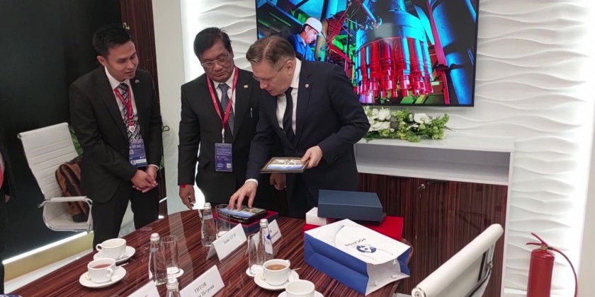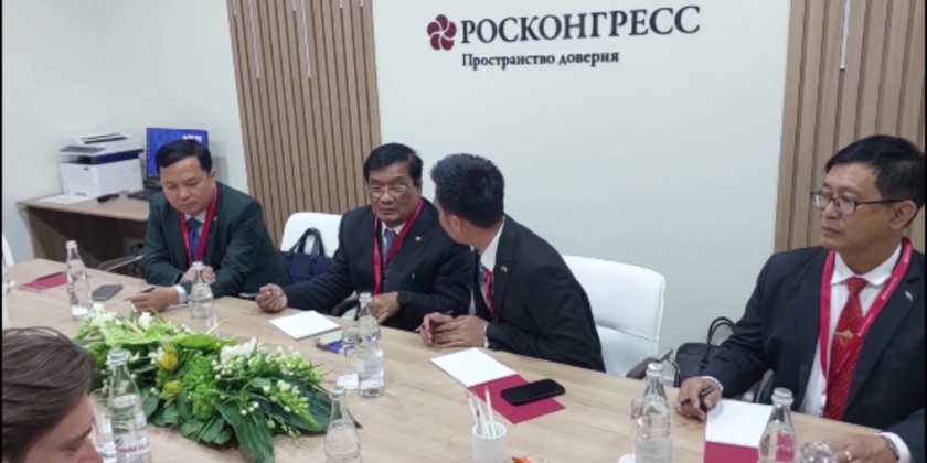 Union Minister for Electric Power U Thaung Han together with the Myanmar Ambassador to Russia U Lwin Oo attended the second day of International Economic Forum 2023 at St.Petersburg on 15th June.