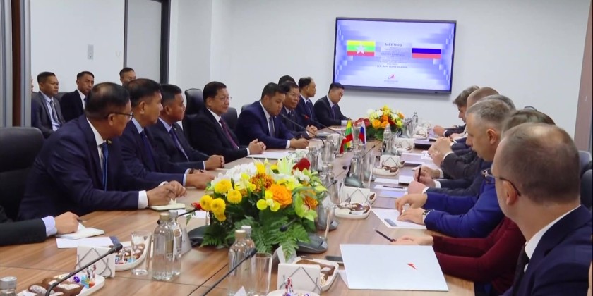 Acting President and Chairman of the State Security and Peace Commission Senior General Min Aung Hlaing, who is on a working visit to the Russian Federation, met and held discussions with Mr. Dmitry V. Bakanov, Director General of the Russian Federation's State Space Corporation "Roscosmos," at the Roscosmos Headquarters on Friday.
