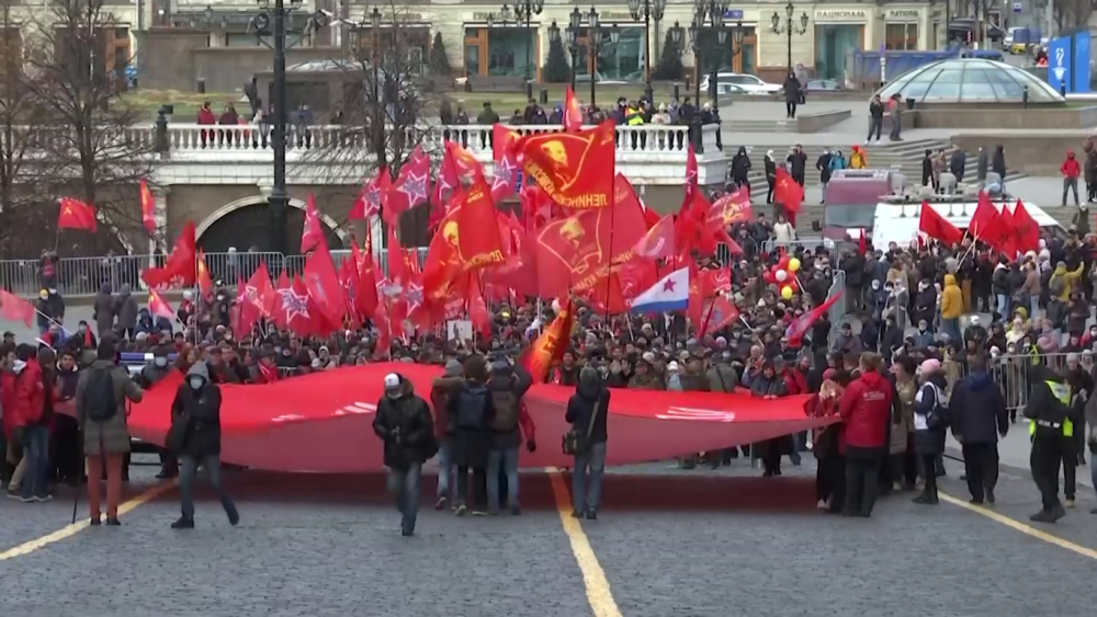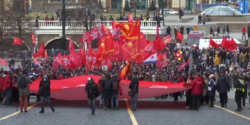 Communist Party leader spoke to the media after laying flowers at the mausoleum, stating the celebration of the anniversary was a path to a brighter future. The Communist Party went ahead with the march, which is a major holiday in the Soviet Union, despite coronavirus restrictions banning mass gatherings.