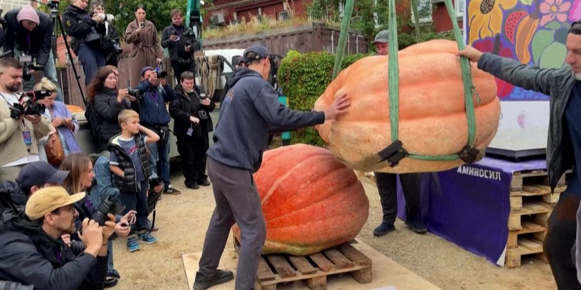 The Giant Vegetables exhibition opened in the "Aptekarsky Ogorod", a botanical garden in Moscow on Saturday, with farmers from all over the country travelling to the capital to compete with their pumpkins, zucchini and watermelons. This season, over 3,000 contestants from all over Russia took part, from Kaliningrad to Vladivostok. The winner of the giant pumpkin category was Alexander Chusov, who grew a pumpkin weighing in at 969kg.
