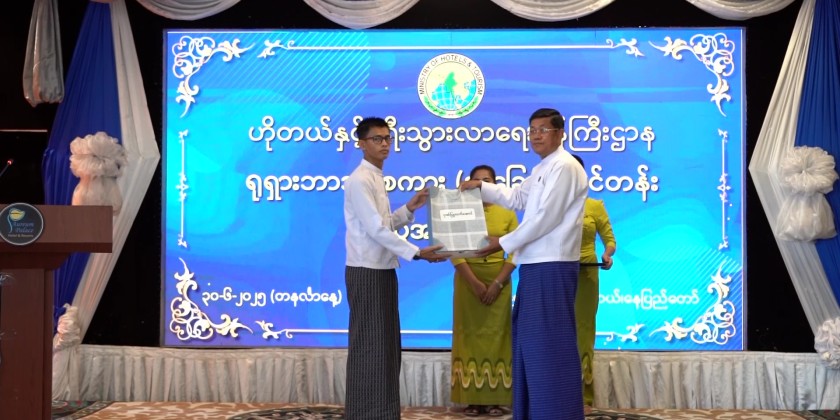 Following that, a trainer from Myanmar-Russia Friendship Association explained the objectives of opening the course and the contents to be taught. The Union Minister then presented commemorative gifts to the course instructors.
