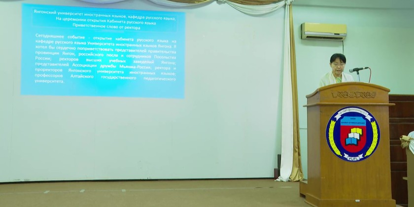 Following the Chief Minister's address, the Russian Ambassador Mr. Iskander Azizov, and Dr. May San Yee, Rector of YUFL, delivered honorary speeches. Director Elena Bavykina of the Altai State Pedagogical University delegation also offered welcoming remarks.