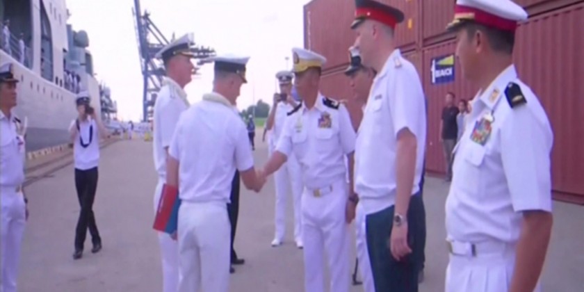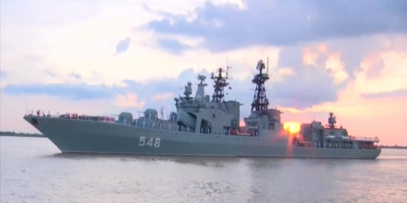 Three Russian Navy destroyers, the Admiral Tributs, Admiral Panteleev, and the Sea Tanker Pechenga, have docked at Thilawa Jetty in Yangon. Their visit is to participate in the 1st Myanmar-Russia Maritime Security Exercise and to engage in a goodwill tour.