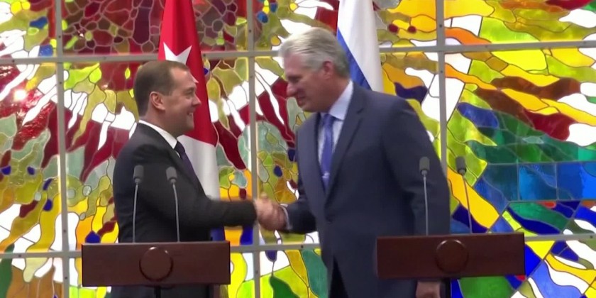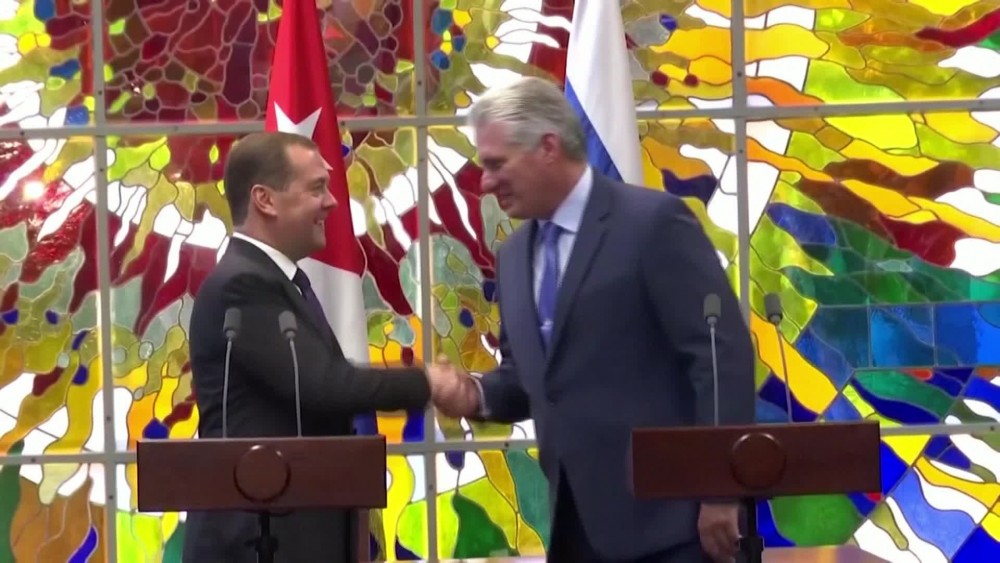 Russian Prime Minister Dmitry Medvedev held talks with Cuba's President in Havana on Thursday. Moscow has sought to renew its commercial, military and political ties with Cuba in recent years, as part of a broader strategy to expand its presence in Latin America as a counterweight to China and the United States.