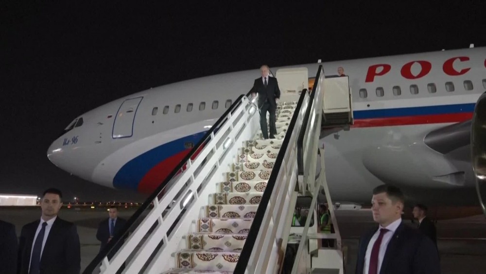 Russian President Vladimir Putin arrived in Turkmenistan, where he is due to meet Iran's President Masoud Pezeshkian for their first face-to-face meeting.