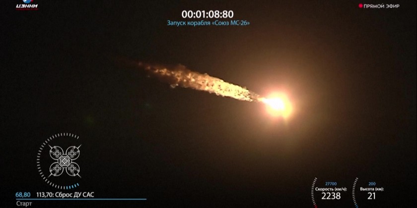 The Soyuz MS-26 took off around 7:23 pm Moscow time. The launch took place without obvious problems and the Soyuz entered orbit eight minutes after liftoff, a relief for Russian space authorities after an automated safety system halted a launch in March because of a voltage drop in the power system.