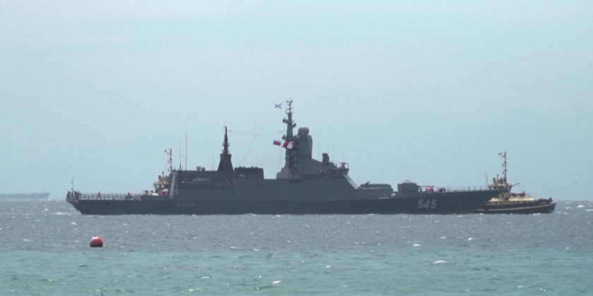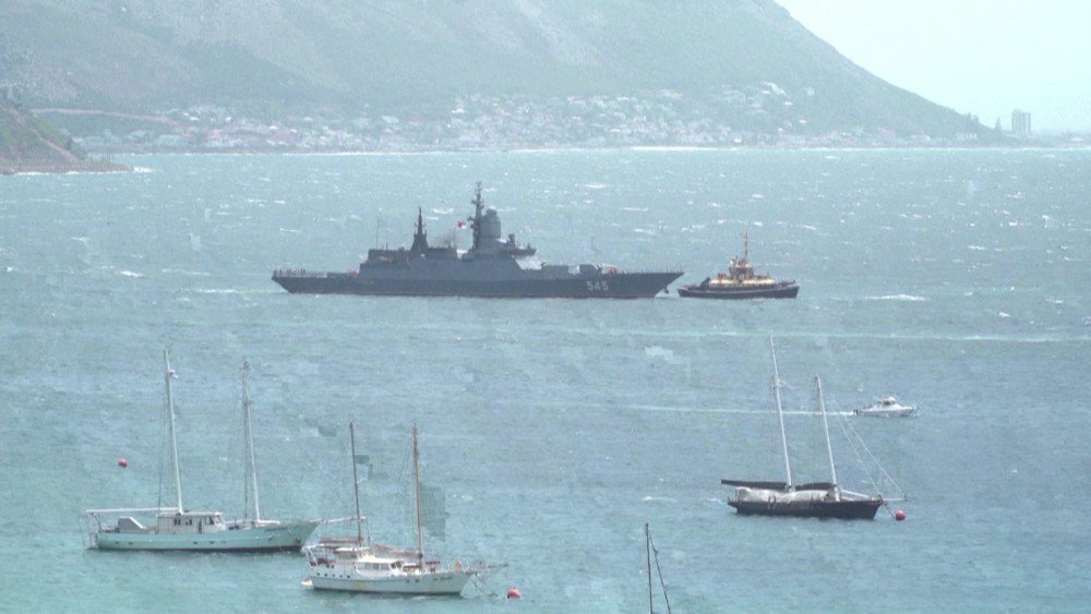 A Russian warship arrived at South Africa's Cape Town primary naval base to join Chinese and Iranian navy vessels in military exercises set to run from January 9th to 16th.