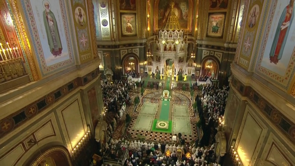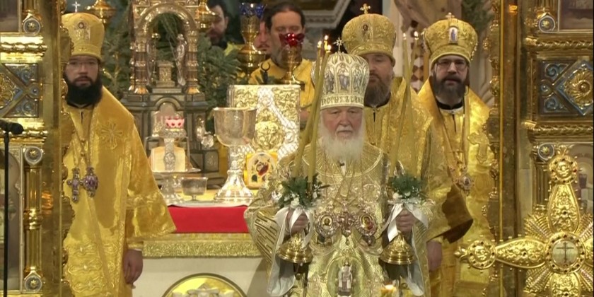 The head of the Russian Orthodox Church, Patriarch Kirill, on Tuesday presided over a mass celebrating Orthodox Christmas at the Cathedral of Christ the Saviour in Moscow.