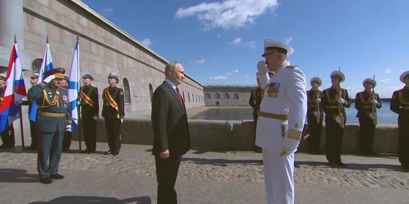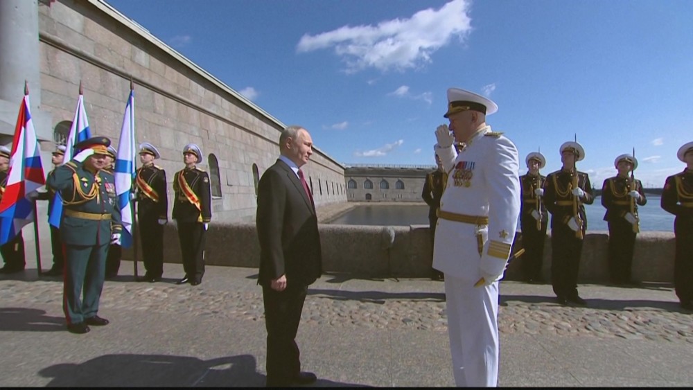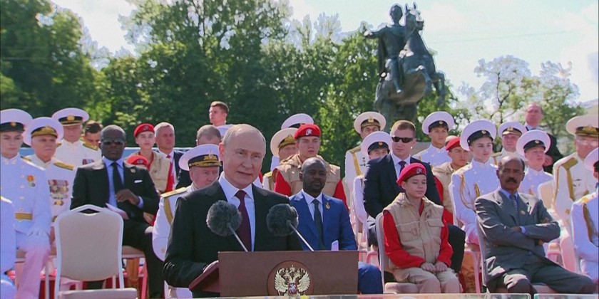 President Vladimir Putin on Sunday praised Russia's navy in an address at an annual warship parade in Saint Petersburg, which he attended accompanied by several African leaders.