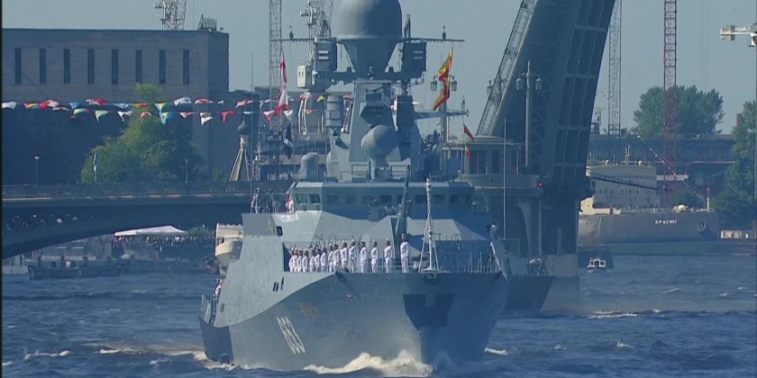 Forty five ships, boats and submarines took part in the parade along with around 3,000 servicemen, the Kremlin said. The former imperial capital hosted a Russia-Africa summit earlier this week.