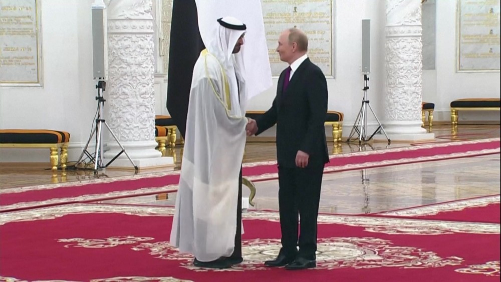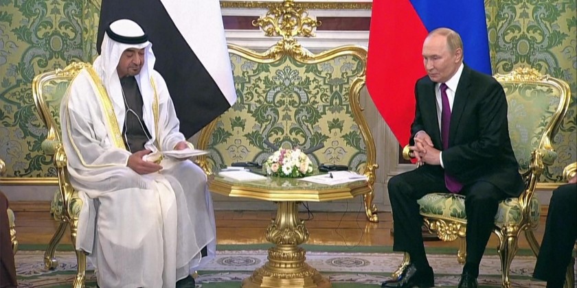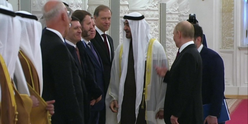 Emirati President Sheikh Mohamed bin Zayed Al Nahyan arrives at the Kremlin to hold talks with Russian President Vladimir Putin. The pair are set to discuss the development of bilateral relations, as well as key regional and international issues. Putin names the United Arab Emirates as a potential location for an upcoming summit with US President Donald Trump.