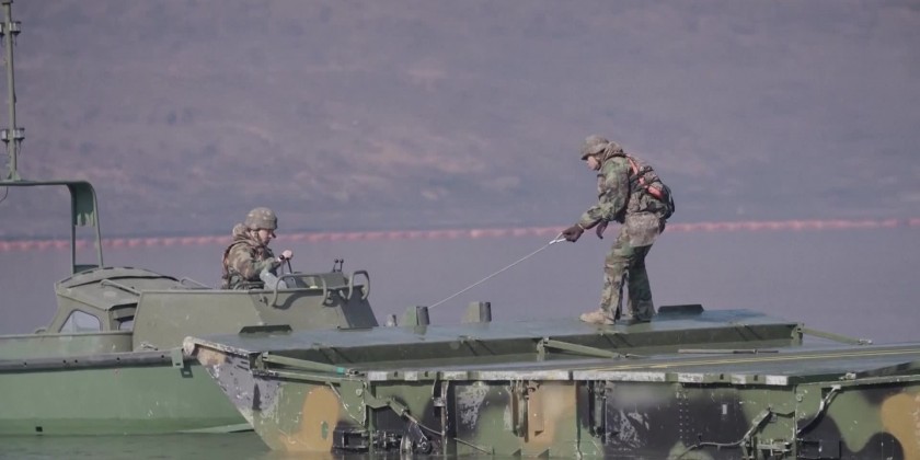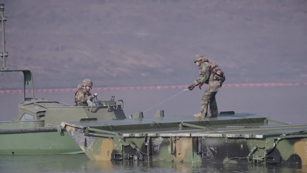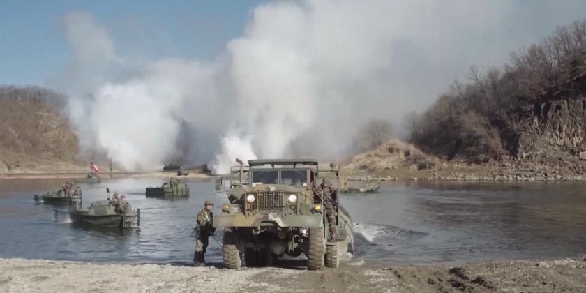 South Korea and U.S. military personnel held a large-scale river-crossing exercise at a training field in Yeoncheon,South Korea on Tuesday.