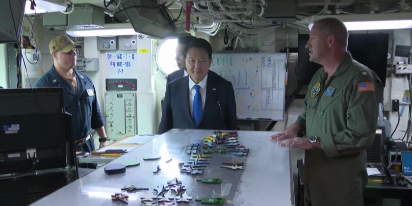 South Korean president Yoon Suk Yeol on Tuesday visited a US nuclear-powered aircraft carrier Tuesday ahead of joint drills between South Korea, the United States and Japan. Yoon visited the USS Theodore Roosevelt (CVN-71), which has made a port call at a naval port in the southeastern city of Busan. The carrier is set to participate in a trilateral naval drill, dubbed Freedom Edge, the first-ever trilateral multi-domain exercise, which kicks off on Wednesday.