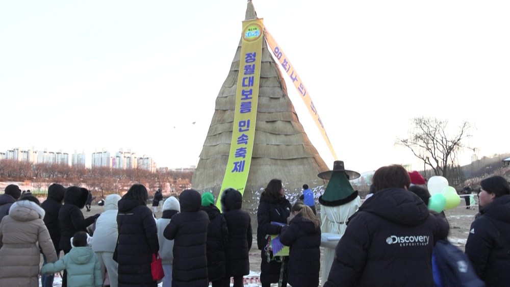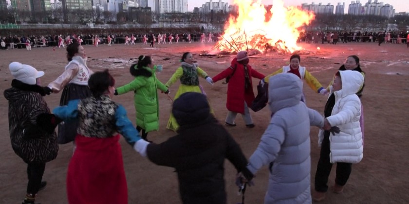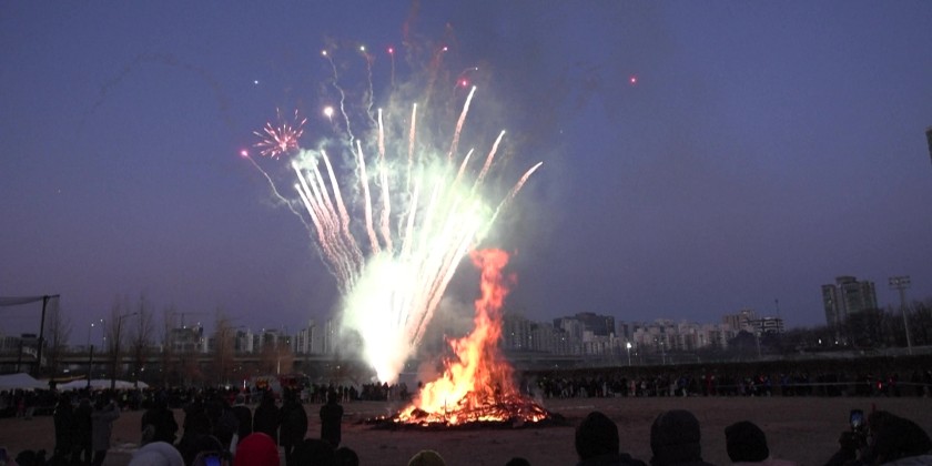 People in Seoul, South Korea gather around a huge bonfire during an event to celebrate “Jeongwol Daeboreum,” a festival celebrating the first full moon of the lunar new year.