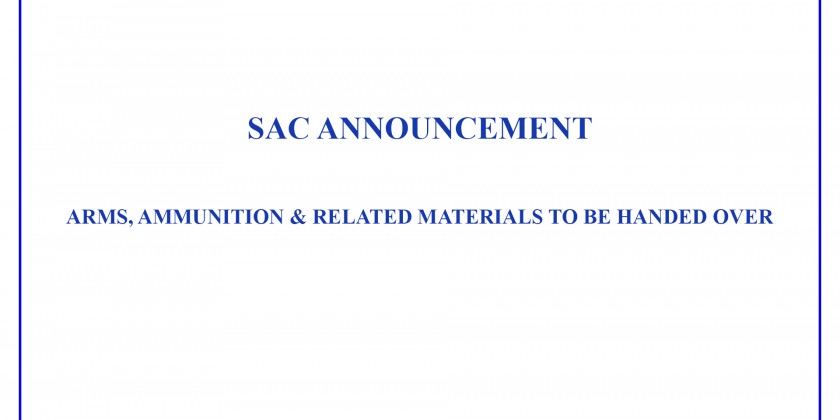 SAC Announcement: Arms, Ammunition & Related Materials To Be Handed Over
