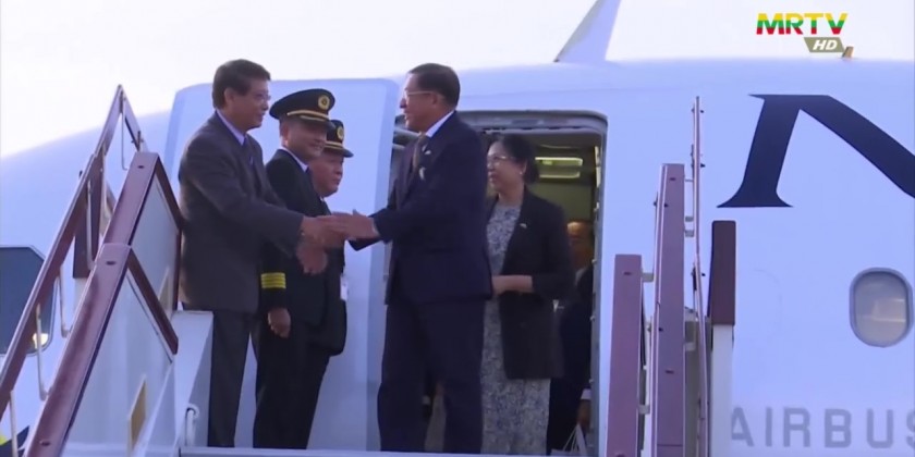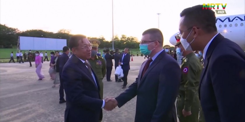 On arrival at Tatmadaw Airport in Nay Pyi Taw on the same day, the delegation led by Senior General was welcomed by SAC Vice-Chairman Deputy Commander-in-Chief of Defence Services Commander-in-Chief (Army) Vice-Senior General Soe Win and wife, SAC members and their wives, Union ministers, senior military officers from the office of the Commander-in-Chief (Army) and their wives, deputy head of the Russian Embassy in Myanmar Mr. Pavel A Klabukov and many other officials.