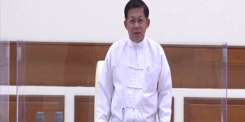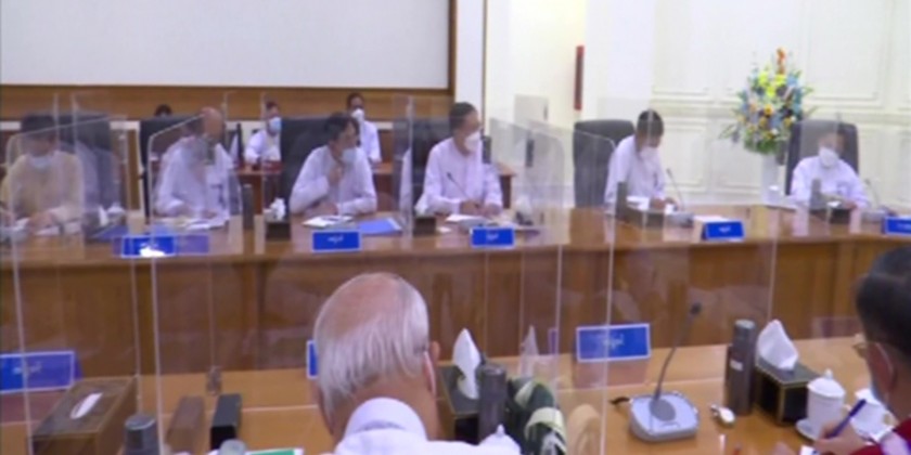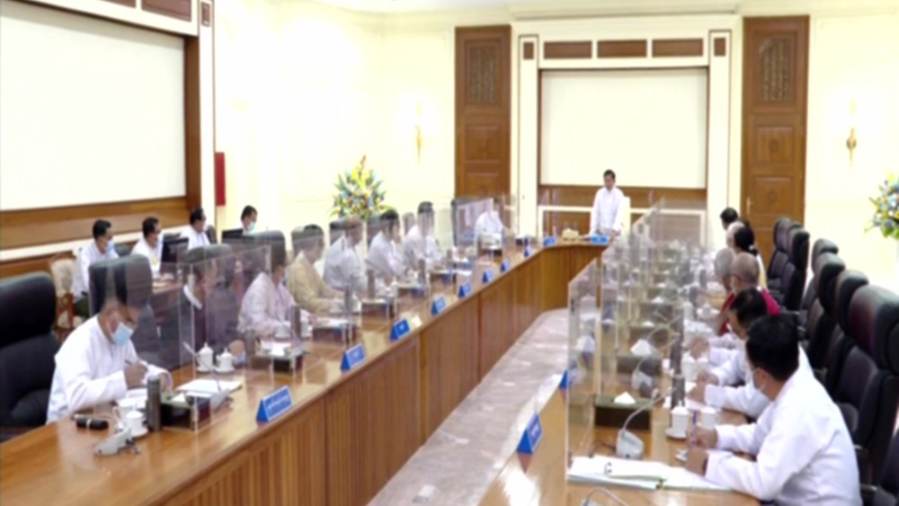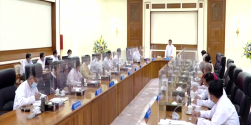 State Administration Council Chairman Prime Minister Senior General Min Aung Hlaing addresses the SAC meeting 5/2022 held in the meeting hall of the Office of the State Administration Council Chairman in Nay Pyi Taw on 16 June 2022.