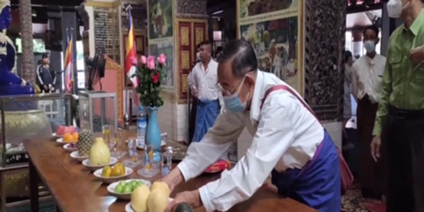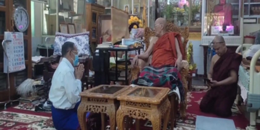 First, in Nyaungdon Township of Maubin District, the SAC Member paid homage to the Atula Marazein Bronze Buddha Image. And, at the Ponnama Rama Zay Monastery, he paid respects to the Padana Nayaka Sayadaw and offered offertories.