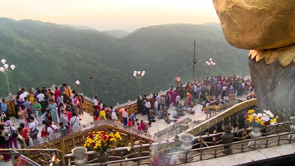 KyaikHtiYoe Pagoda, a well-known pilgrimage site, in Mon State is full with crowds of pilgrims and visitors during Thadingyut festive.