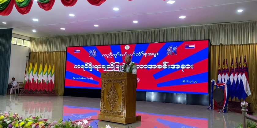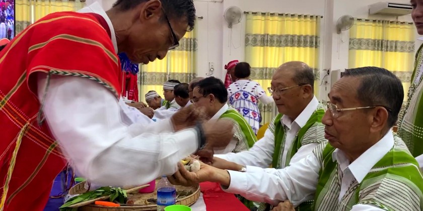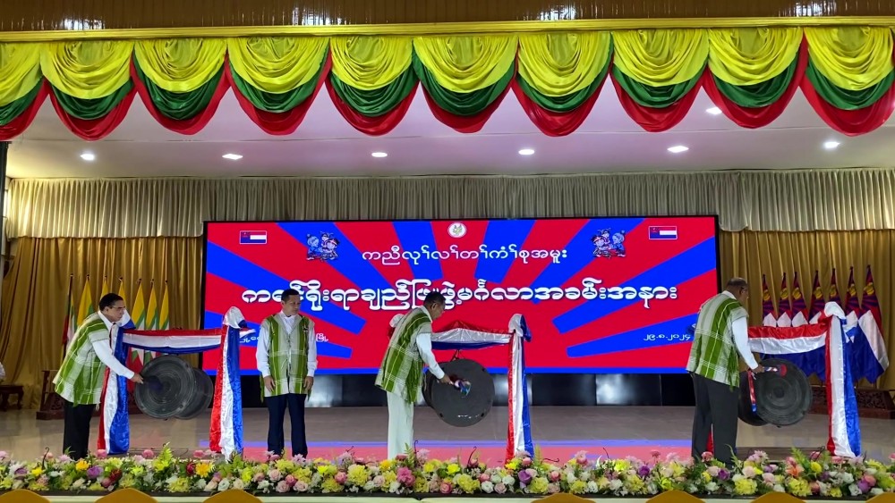Kayin Traditional White Thread Tying Ceremony was held at the city hall in Bago on Thursday with the attendance of member of the State Administration Council Mahn Nyein Maung, Union Minister for Ethnic Affairs Jeng phang Naw Taung and Bago Region Chief Minister U Myo Swe Win.