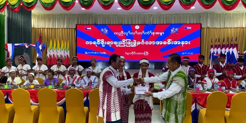 After enjoying performances by the Kayin ethnic people, attendees received the traditional whit thread tying at the designated place. During the event, cash assistance were provided to elders and Bago Region Kayin Literature and Culture Committee. The Union Minister also presented cash rewards to Kayin Traditional dance troupe.