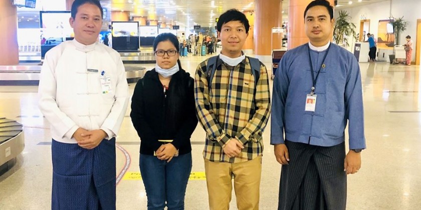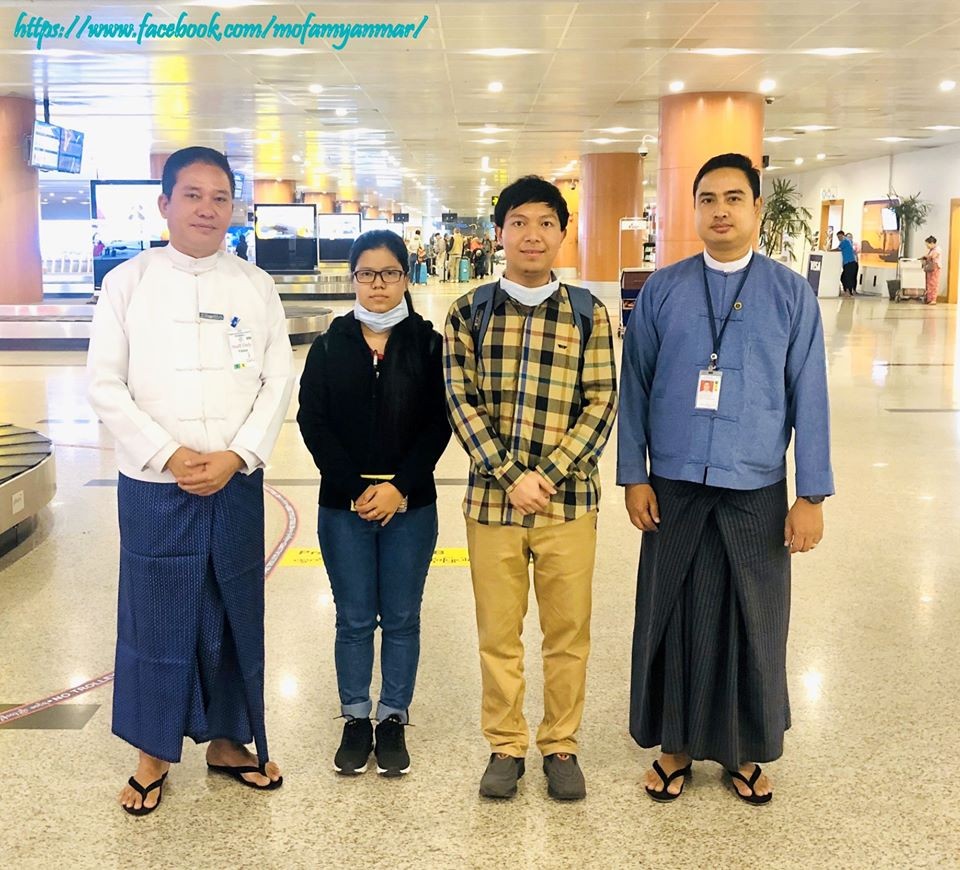Two Myanmar scholars who have left in Wuhan of China during the evacuation by a special flight on 2nd February arrived back in Yangon via New Delhi of India on Saturday.