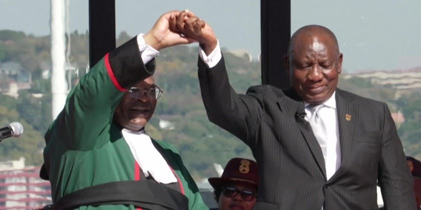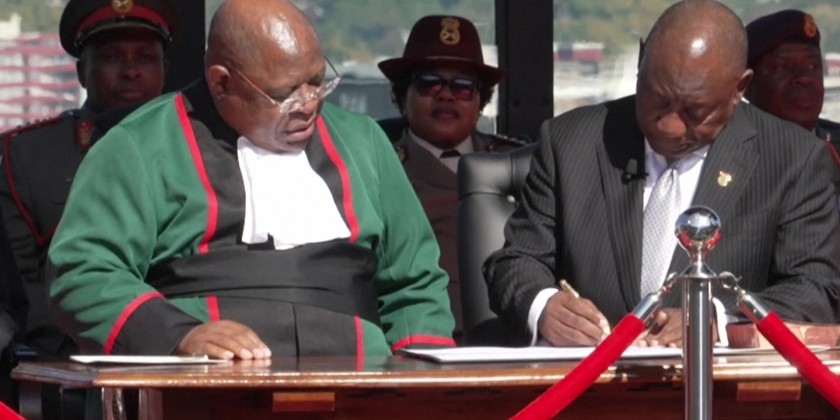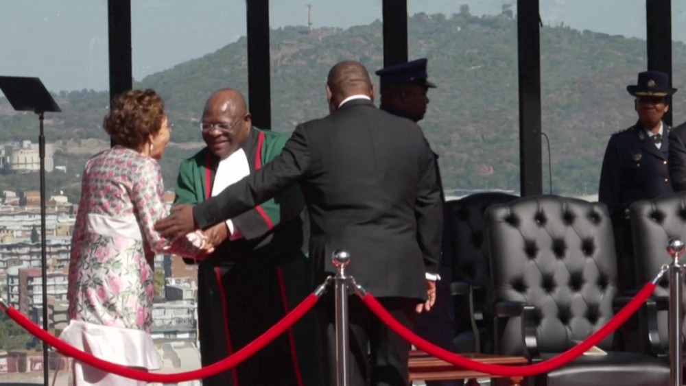 South Africa's Cyril Ramaphosa is sworn in for a second full term as president at a ceremony in Pretoria, after his African National Congress (ANC) struck a government coalition deal. He also called for the country to "move forward together" during an inauguration speech.