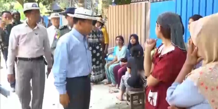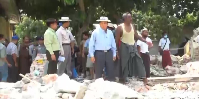 On March 29, Chief Minister U Myat Kyaw inspected the affected areas where the rescue operations are underway by Tatmadaw members, Myanmar Police Force, firefighters, and social organizations.