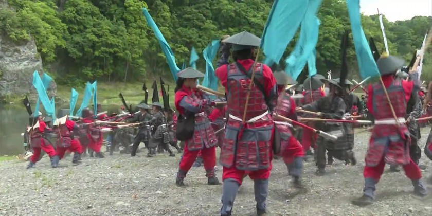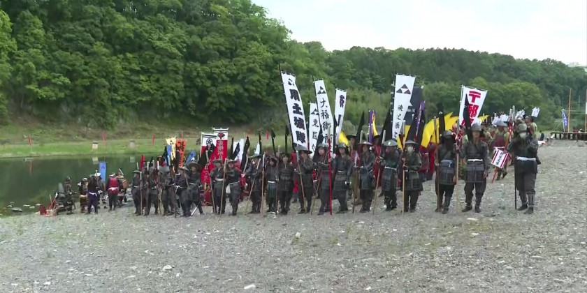Nowadays the site of the castle is designated as a national historic landmark. The festival featured a re-enactment of the 16th century battle between Hojo’s men and the much bigger army of Toyotomi Hideyoshi on a riverbank, against the backdrop of mock cannon fire.