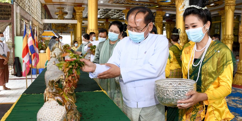The sandalwood paste, gained from the ceremony, were later offered to the Buddha images at Atula Marazein Pyilone Chantha Pagoda in Sittwe. The Rakhine State Government also made 10 million kyats donation for renovation of the pagoda.
