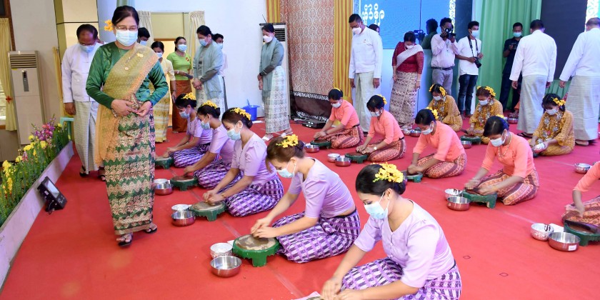 Rakhine State Government organized Rakhine Traditional Sandalwood Grinding Festival and Water Pouring to Buddha Image in Sittwe on 13th April.