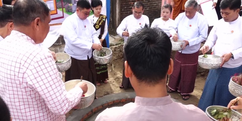 Laying foundation ceremony to construct the Sangha hospital building, operating theater and radiology room at the MyintMyat Sate Htar Jivitadana free of charge clinic located in the precinct of Kya Khat Ngu Monastery was held at the monastery in Kya Khat Ngu Village-tract, Paung Township of Mon State on Sunday.