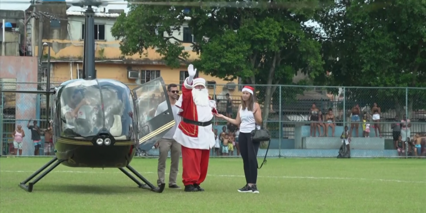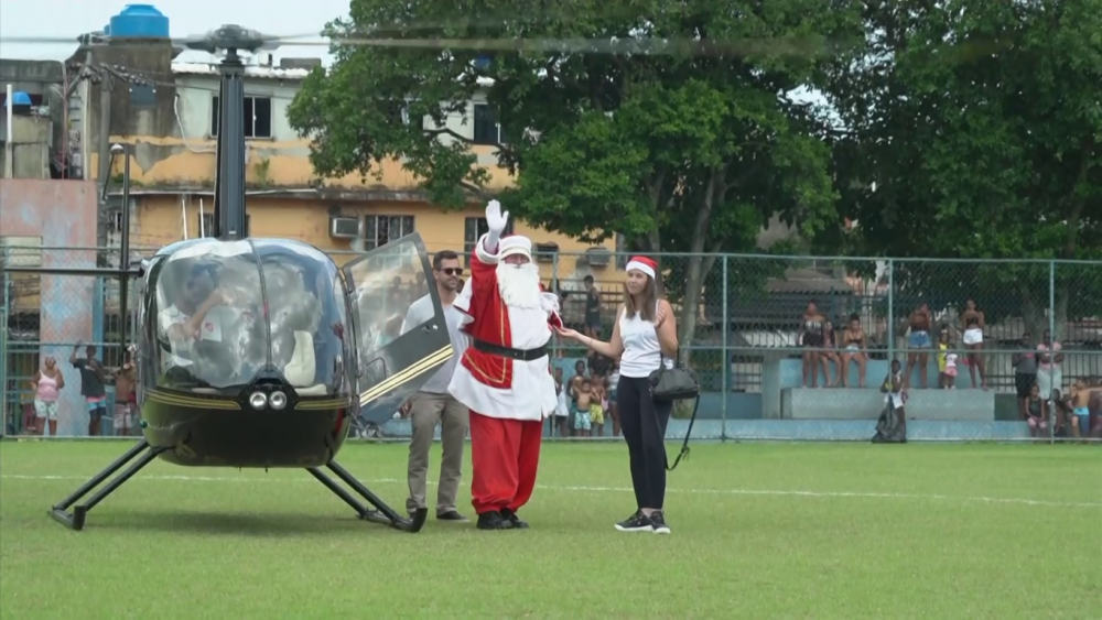 Santa Claus arrived by helicopter to the Vila Kennedy favela in Rio de Janeiro on Saturday, bringing gifts for the children and Christmas cheer for everyone else. It's the first community Christmas event for three years, with the previous two being cancelled first due to lack of funds and then the pandemic.