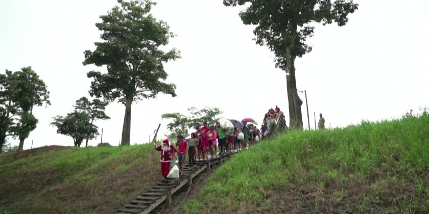 The Friends of Santa Claus volunteer group delivered toys by river to communities in the rural area of Careiro da Varzea, Amazonas state, Brazil. The initiative is expected to benefit about 900 kids. Since 1998, the Friends of Santa Claus volunteer group has been promoting Christmas for children in rural and riverside communities in the Amazon rainforest.
