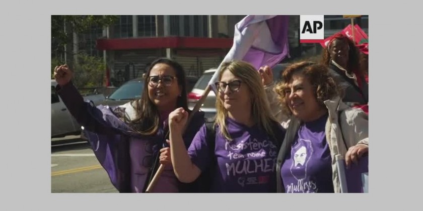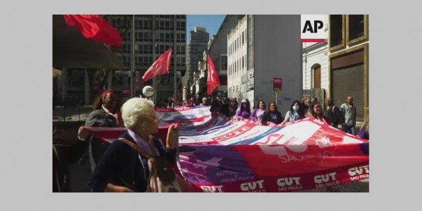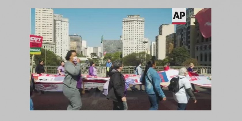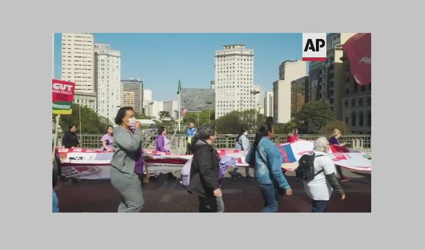 Hundreds of women marched in Sao Paulo on Saturday, calling on voters to support Luiz Inacio da Silva, also known as Lula, in upcoming elections in October and to condemn what they consider a lack of support from President Jair Bolsonaro for policies important to women.