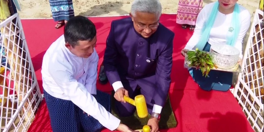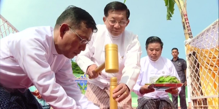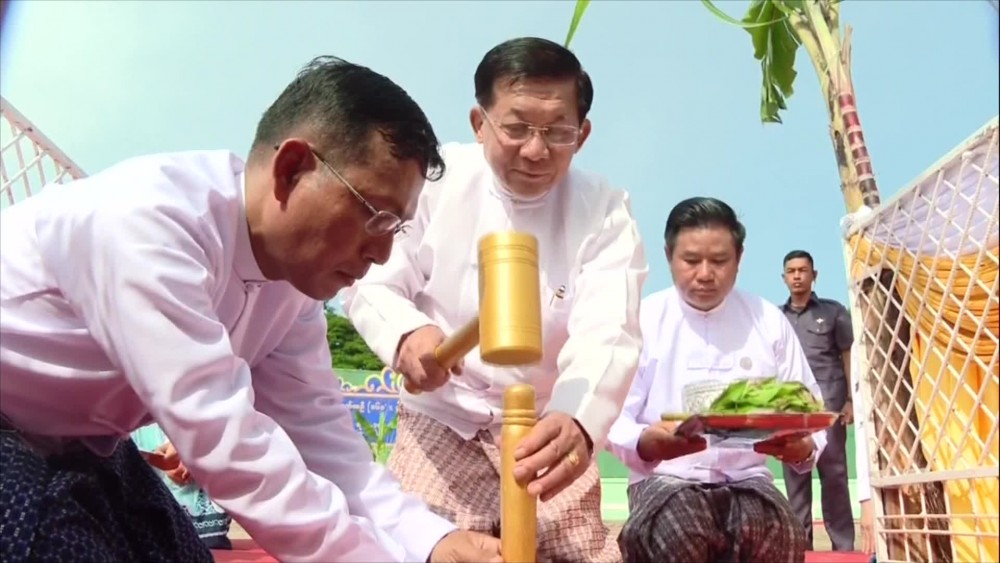 A stake driving ceremony for the building was held on Wednesday with the attendance of Chairman of the State Administration Council Prime Minister Senior General Min Aung Hlaing. At the auspicious time, the Prime Minister drove the Yadana stake at the center of the construction site and sprinkled it with scented water.