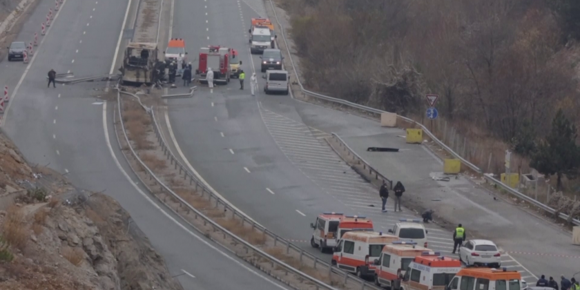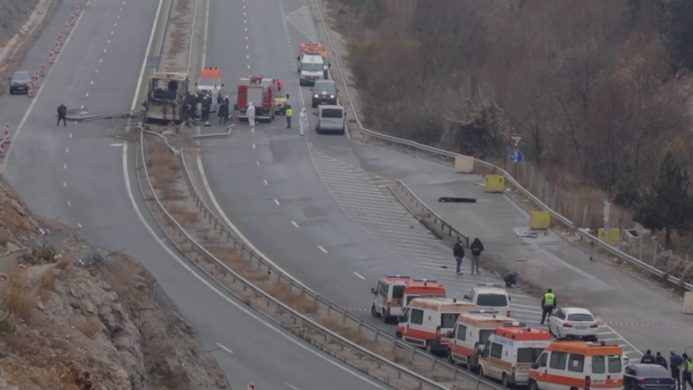 A bus carrying tourists back to North Macedonia crashed and caught fire in western Bulgaria early Tuesday, killing at least 45 people, including a dozen children.