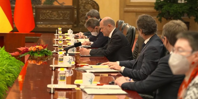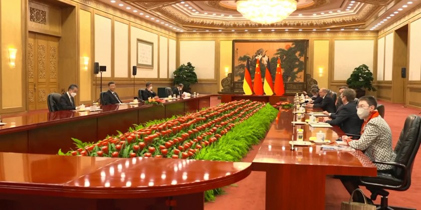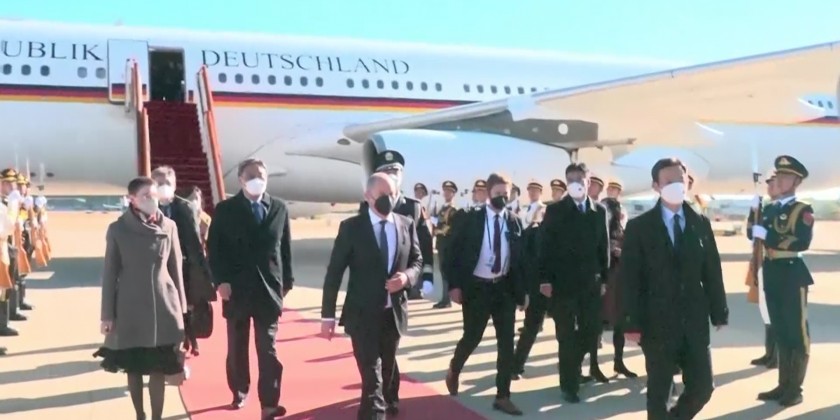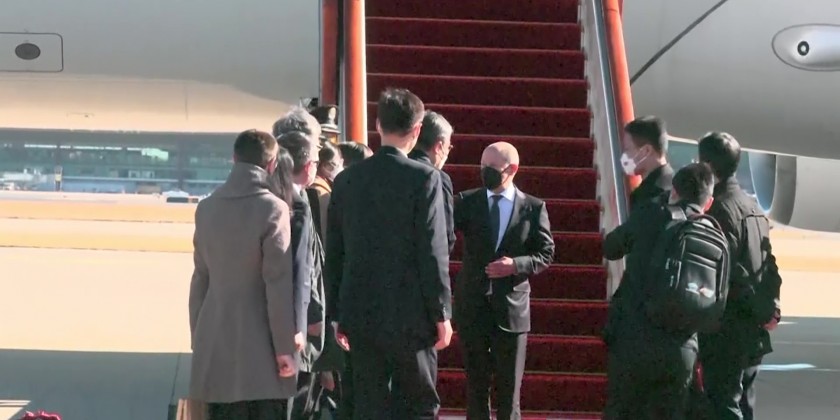 German Chancellor Olaf Scholz arrived in Beijing on Friday where he met with Chinese President Xi Jinping for a one-day visit. Scholz, who is traveling with several top German business leaders, received a formal welcome from Xi, who was recently re-appointed head of the ruling Communist Party, at the Great Hall of the People in the heart of Beijing.