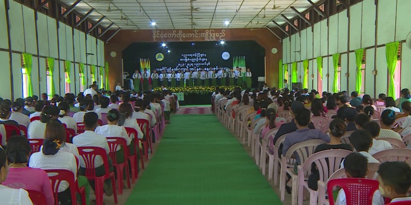 And then, the school enrollment day ceremony was continued at the Aye Myathida hall and the students sang the “Education is treasure” song and the state chief minister encouraged them.